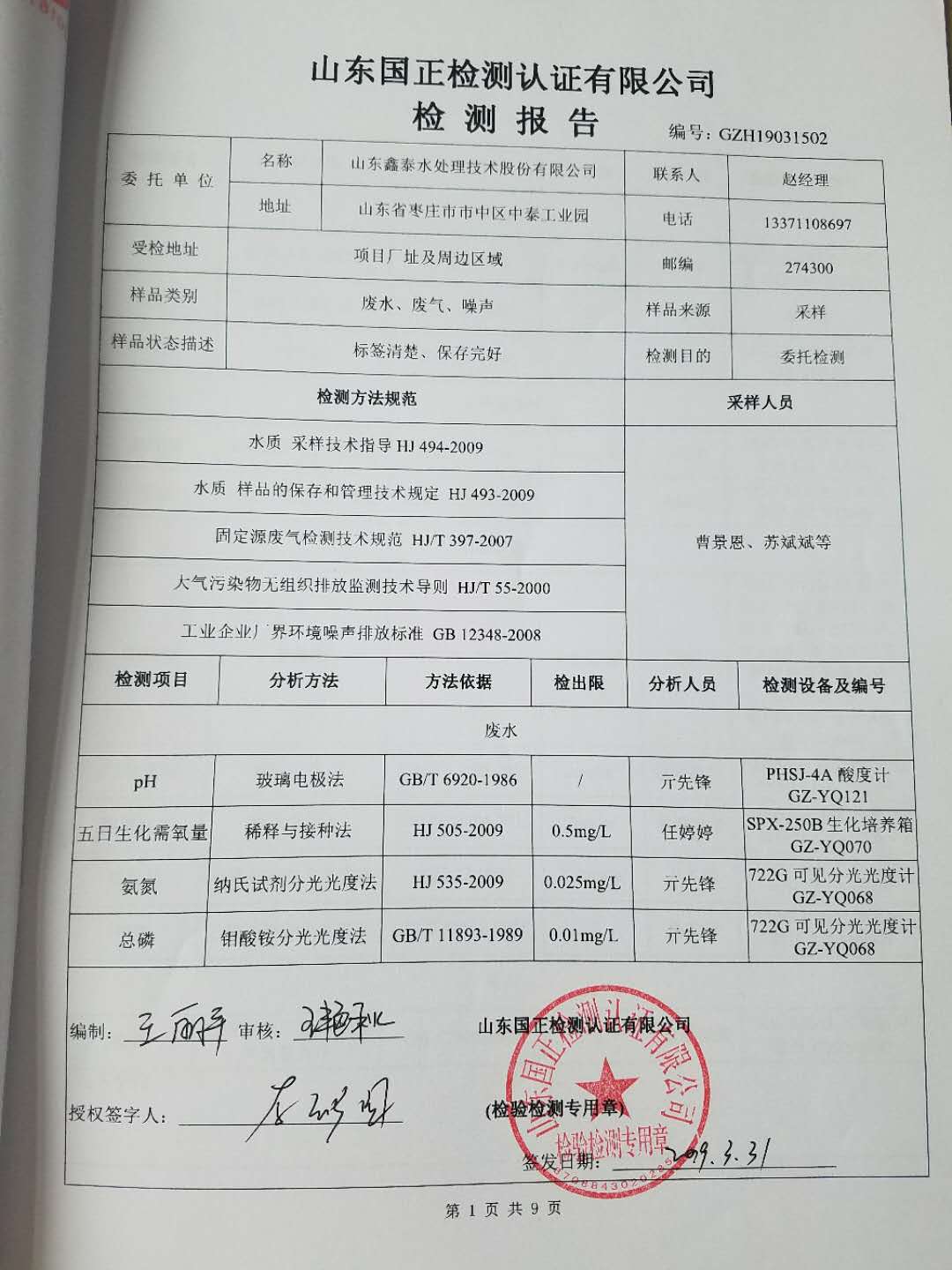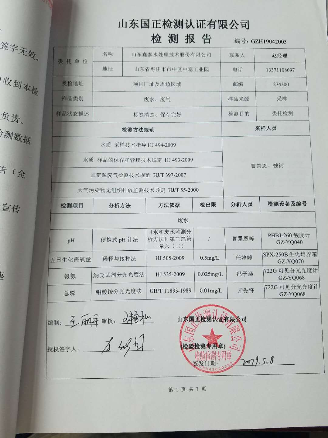 | 單位名稱 | 山東鑫泰水處理技術(shù)股份有限公司 | |||
