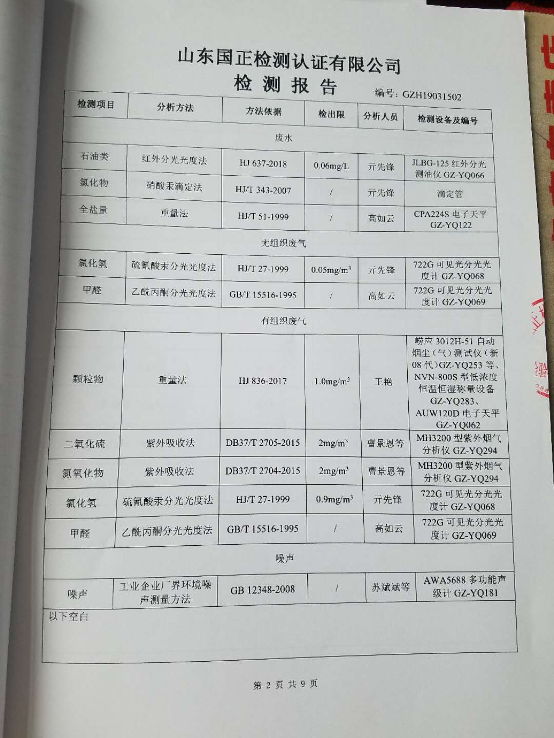 | 主要內(nèi)容 | 與山東國正檢測認(rèn)證有限公司簽訂環(huán)境檢測協(xié)議,委托第三方機(jī)構(gòu)對我公司進(jìn)行環(huán)境檢測,檢測頻次、地點(diǎn)及項目等與環(huán)評報告要求一致。 |